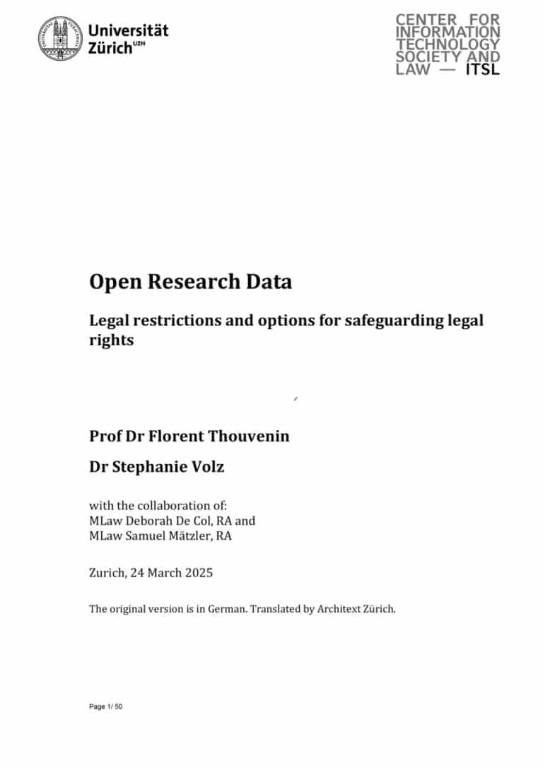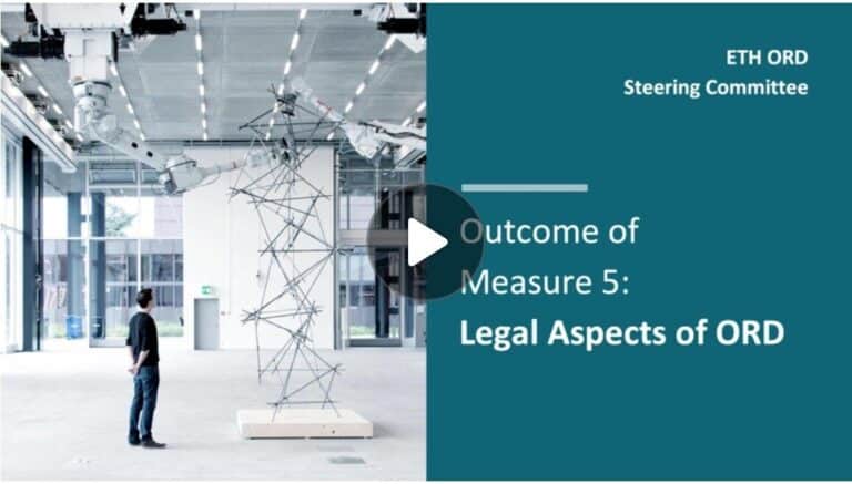 Where employees of one of the institutions from the ETH Domain generate data in the course of their employment, the institution in question is entitled to assert rights in that data. A different rule will apply only in the case of copyright to literary and artistic works which are represented in data. This means that the institutions can generally determine how and in what form data are to be made accessible as ORD. However, ORD are subject to certain restrictions. These may arise from applicable law, thirdparty rights or contract.